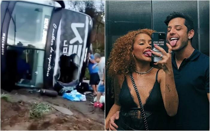 Ônibus com Sthe Matos e Kevi Jonny tomba na Bahia; equipe e casal passam bem